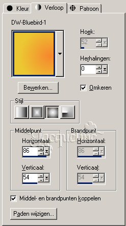 het verloop 'DW-Bluebird' met de volgende instellingen.